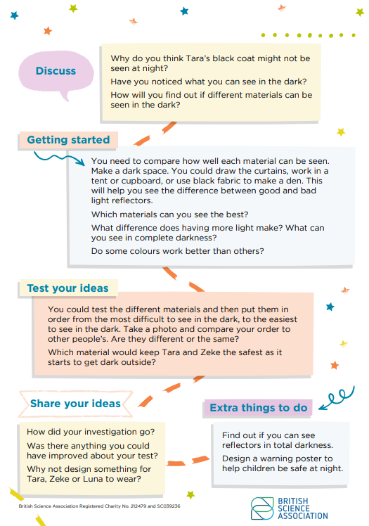 Be Seen Be Safe is designed to get children thinking about reflection and light. Can they help Tara and Zeke decide on the best thing to wear that will help them be seen in the dark? This editable version of the Organiser and Activity Card can be amended, allowing you to adapt the resources for the needs of your learners.